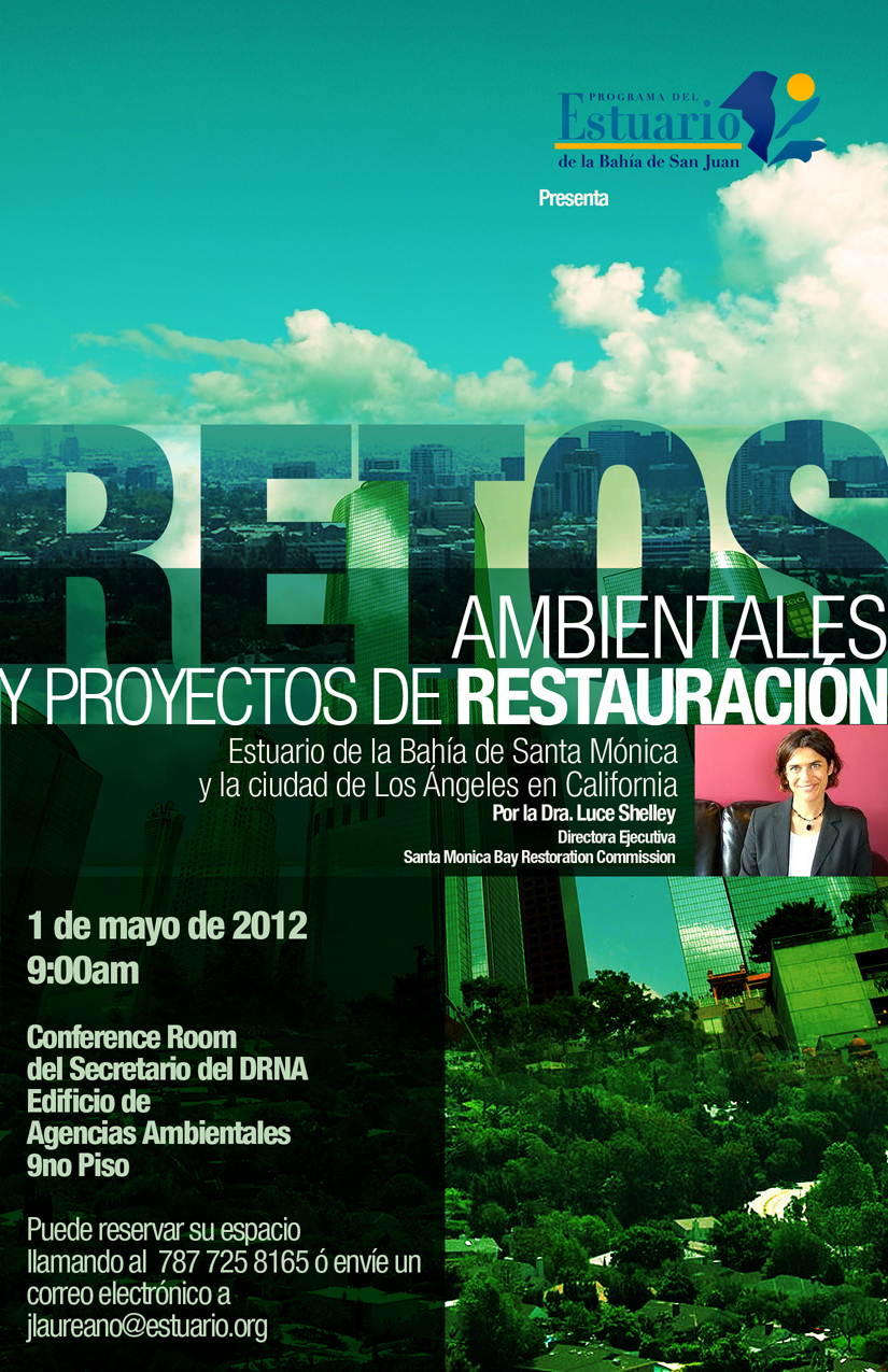 This Tuesday, May 1, 2012 the San Juan Bay Estuary Program presents "The City of Los Angeles and the Santa Monica Bay Estuary: Environmental Challenges and Restoration Projects" by Dr. Shelley Luce, Executive Director of the Santa Monica Bay Restoration Commission. The conference will take place at 9:00am in the Secretary of the Department of Natural Resources' conference room, Environmental Agencies Building, 9th Floor. You can reserve by calling 787 725 8165 or writing an email to jlaureano@estuario.org